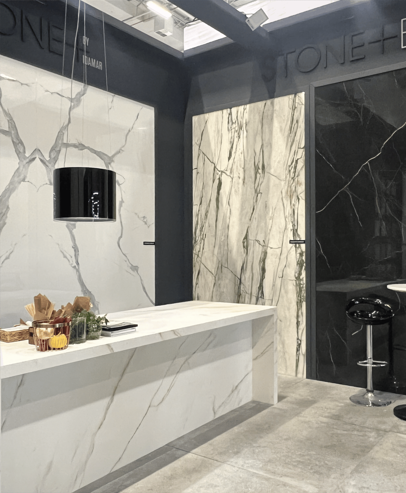 Mimari süreçte amaç fuar alanını yalnızca estetik bir platforma dönüştürmek değil markayı temsil eden fonksiyonel bir yapıya kavuşturmaktı. Tasarımın her aşamasında ergonomi, akış ve kullanım kolaylığı göz önünde bulunduruldu. Stone by Idamar’ın ürünlerini en iyi şekilde yansıtacak hacimler oluşturulurken alanın mimari bütünlüğü titizlikle ele alındı. Fuar alanındaki yüksek tavanlar, geniş geçiş bölgeleri ve ziyaretçi akışına uygun hareket noktaları tasarımın temelini belirleyen unsurlar oldu.